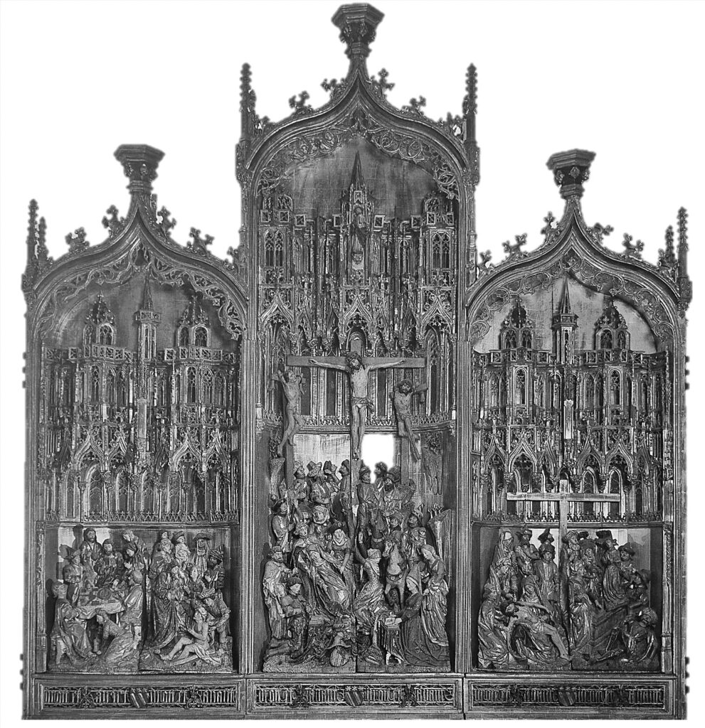 The figures display marked affinities with Brussels-made Brabantine retables, notably the Retable of the Passion (c. 1470, Musées royaux d’Art et d’Histoire, Brussels). Their angular modelling and emphatic physiognomies align with the broader sculptural idiom of the period and anticipate the heightened emotionalism later associated with early Boschian production.
