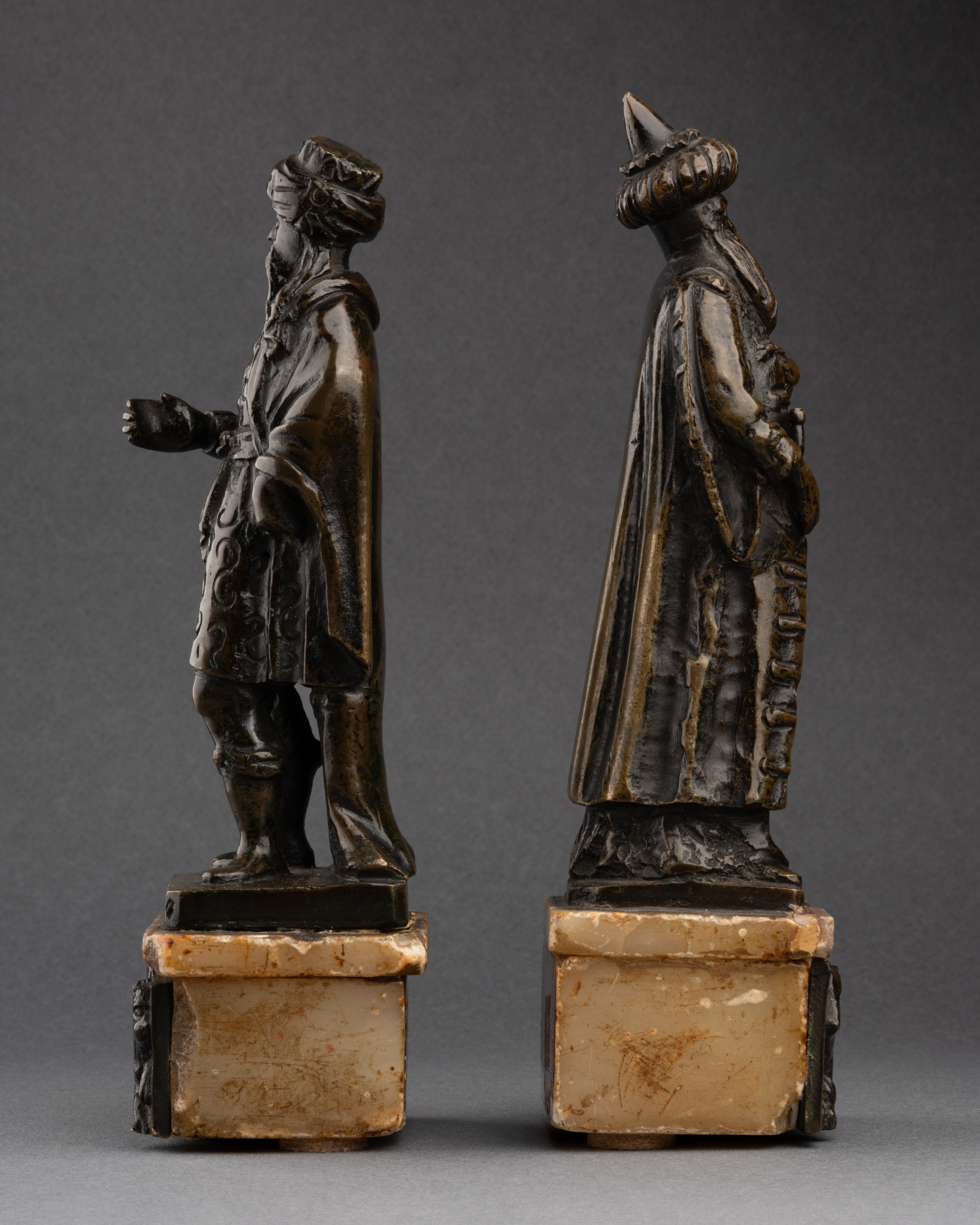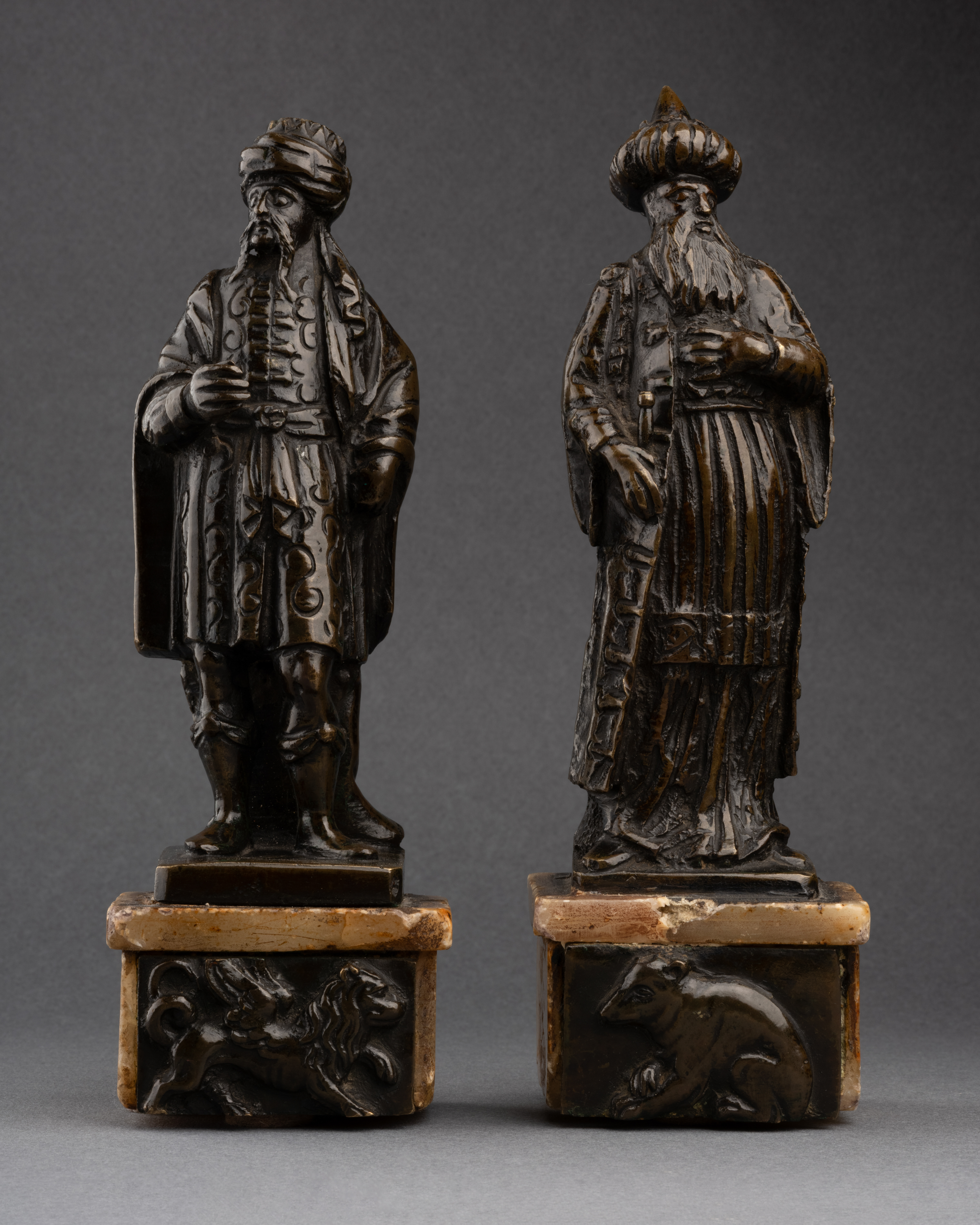 The presence of the winged lion alongside a sultan emphasizes Venice’s intent to foster positive relations with the Ottoman Empire. These bronzes may have been created after one of the many peace treaties between the two powers. Bronzes, sculptures, clocks, and medals were typical diplomatic gifts from Venetian representatives, and these statuettes, symbolizing the close ties between the Serenissima and the Ottoman Empire, were likely presented to an Ottoman ambassador during one of the peace agreements of the 16th century.